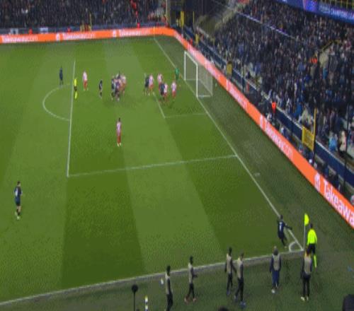 第51分钟,奥涅迪卡角球乱战破门,布鲁日1-2扳回一城!