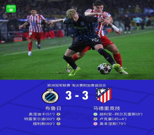 XbotGo丨马竞客场33遭布鲁日绝平,阿尔瓦雷斯、卢克曼破门 -
